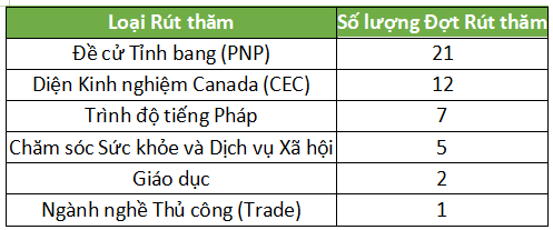 Các đợt rút thăm Express Entry trong năm nay chủ yếu tập trung vào các đợt rút thăm PNP, phần còn lại dành cho các ứng viên CEC, ứng viên có trình độ tiếng Pháp và những người thuộc các danh mục nghề nghiệp ưu tiên của Express Entry: