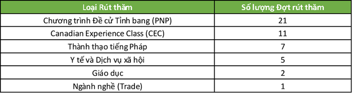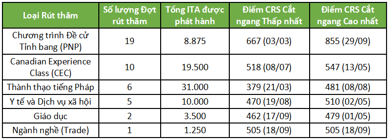 Các đợt rút thăm Express Entry trong năm nay chủ yếu tập trung vào các đợt rút thăm PNP, với phần còn lại của ITA Express Entry dành cho các ứng viên CEC, ứng viên có thành thạo tiếng Pháp, và những người thuộc các danh mục nghề nghiệp ưu tiên của Express Entry.