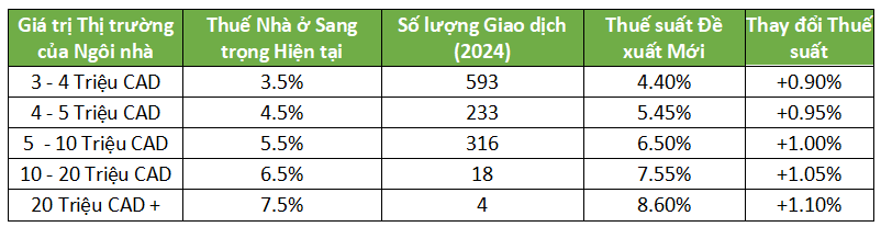 Tuần tới, Thị trưởng Olivia Chow sẽ trình bày một kiến nghị lên Ủy ban Điều hành, trong đó đề xuất tăng mức Thuế Nhà Sang Trọng theo bậc thang từ 0,90% đến 1,10%. Dự kiến mức thuế mới này sẽ mang lại thêm 13,8 triệu đô la (bắt đầu từ ngày 1 tháng 4), với tổng doanh thu dự kiến là 152 triệu đô la cho thành phố vào năm 2026.
