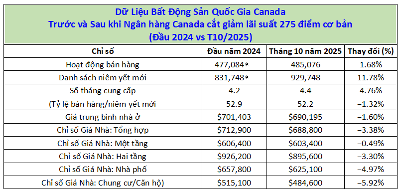 Tuy nhiên, theo dữ liệu từ Hiệp hội Bất động sản Canada, hoạt động mua bán và giá trung bình nhìn chung vẫn ổn định so với đầu năm 2024.
